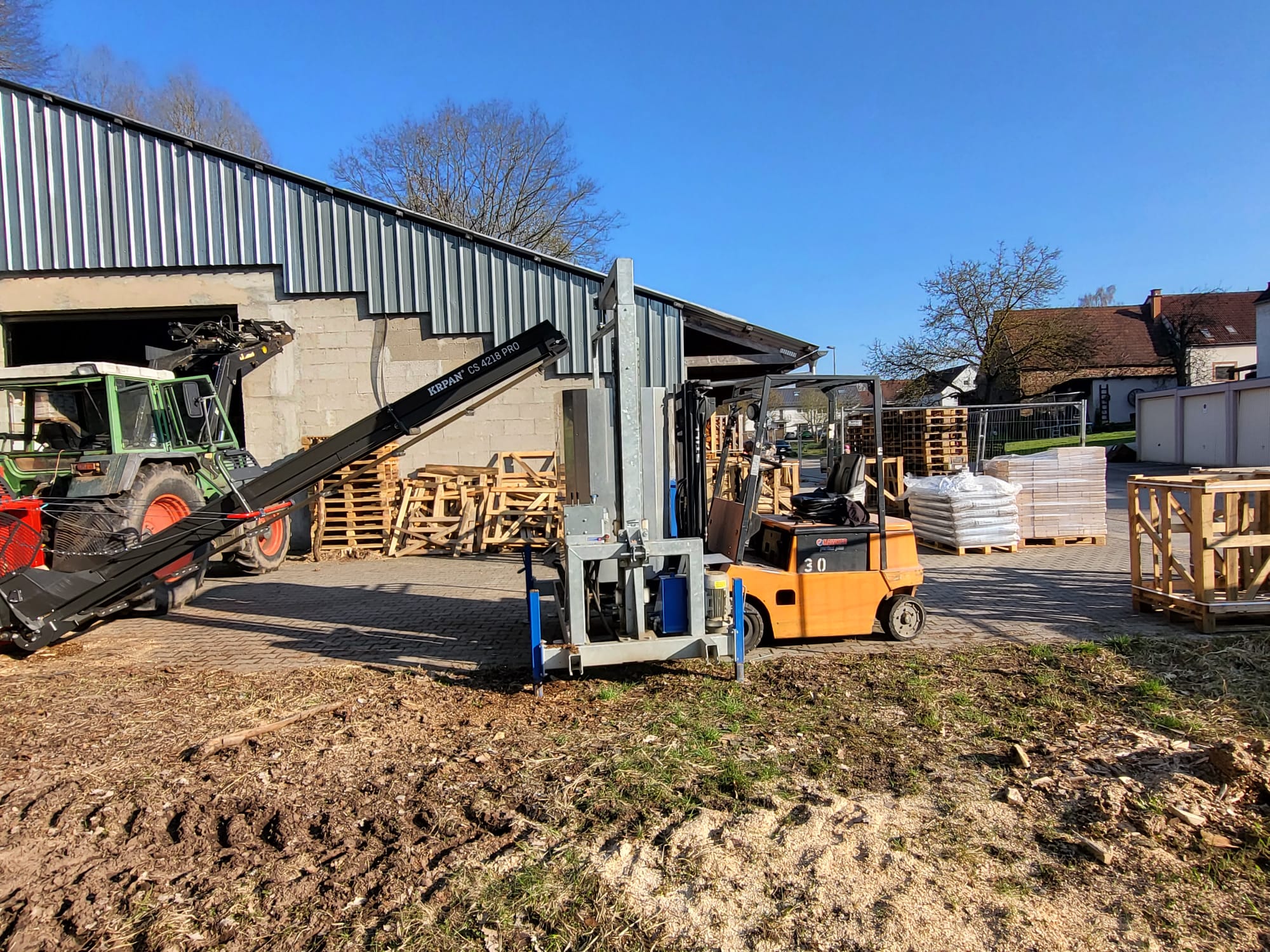 Die Pfäler Wickelbox produzieren wir mit unserem Brennholzautomaten direkt an unserer Lagerhalle in Reichenbach-Steegen.